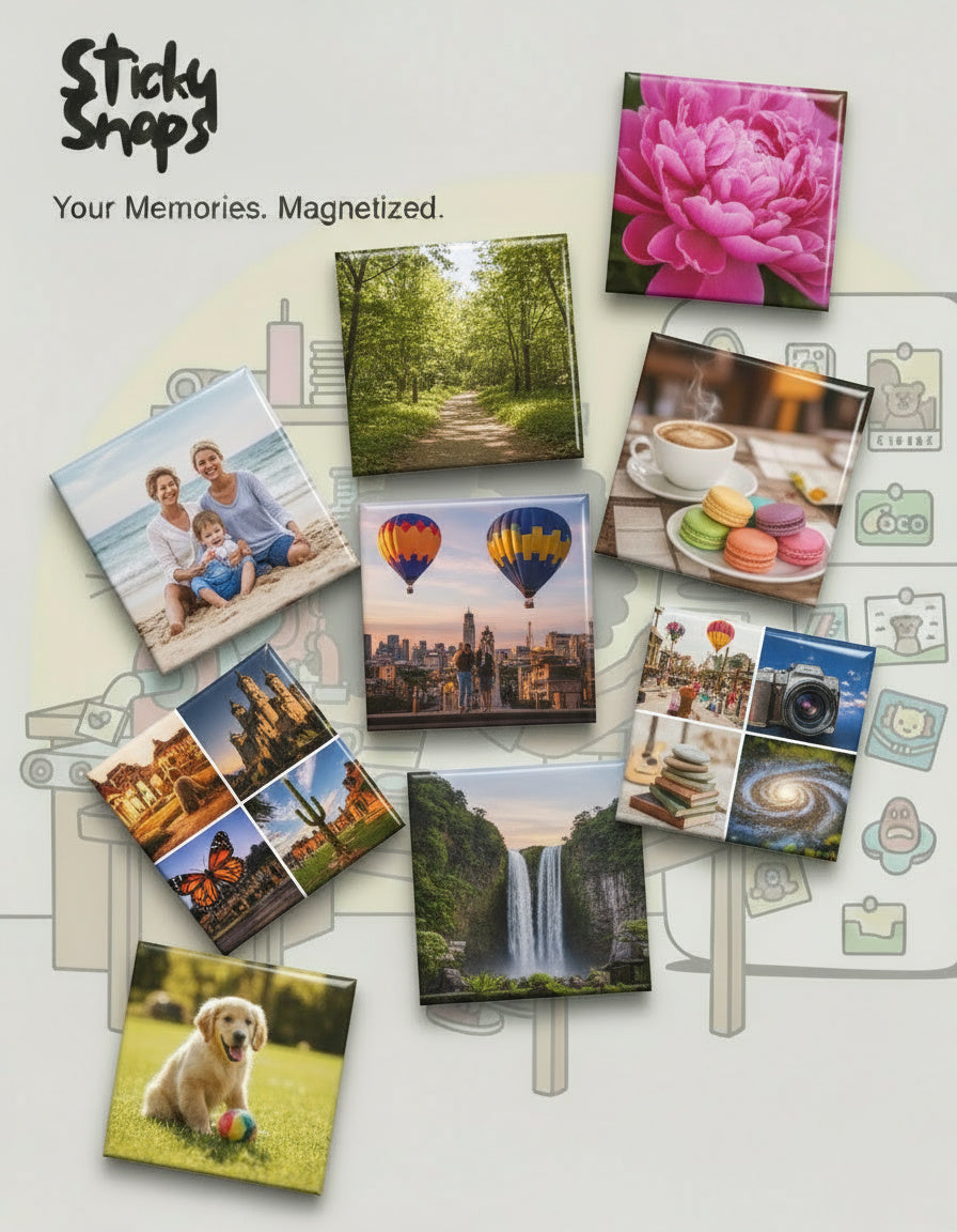 Select a set of 3, 6, or 9 magnets β perfect for gifts or your own fridge.